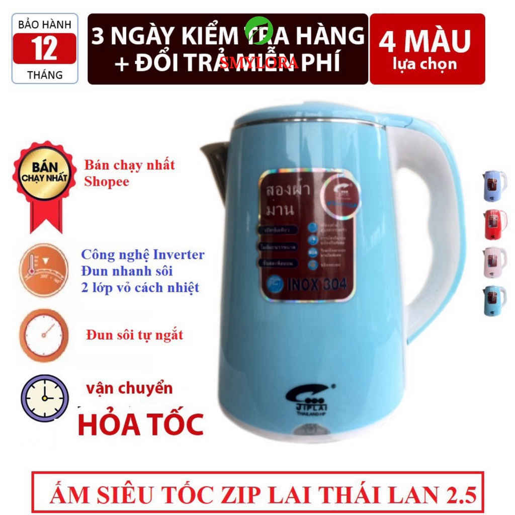 Ấm Siêu Tốc 2 Lớp Cao Cấp Ziplai Thái Lan 2.5L - BẢO HÀNH 6 THÁNG