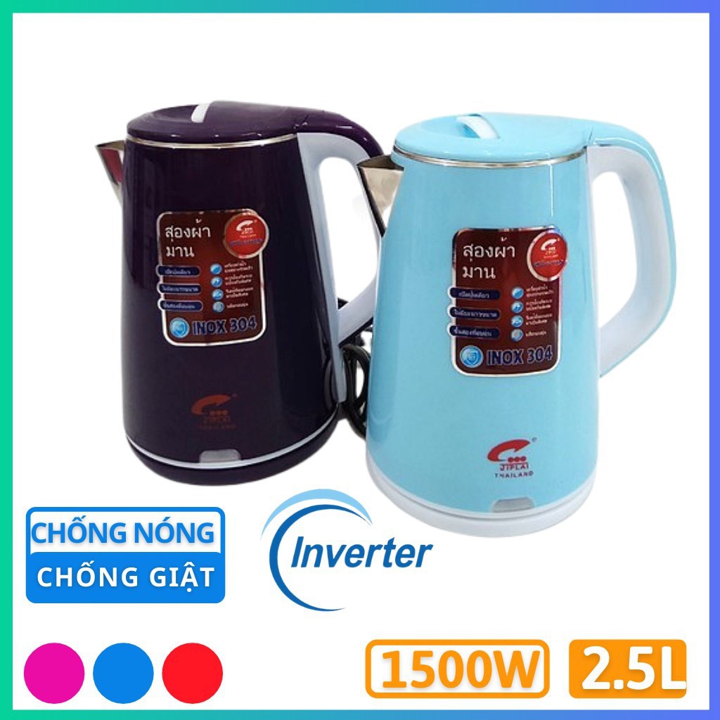 Ấm siêu tốc 2 lớp JipLai Thái Lan loại 2,5l - Giấy bảo hành 12 tháng chính hãng