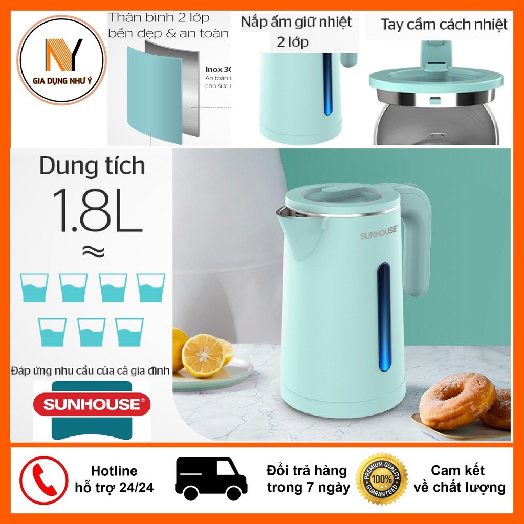 Giới thiệu Ấm Siêu Tốc 2 Lớp Sunhouse SHD1351 Dung Tích 1.8 Lít, Bền Đẹp An Toàn, Bảo Hành Chính Hãng