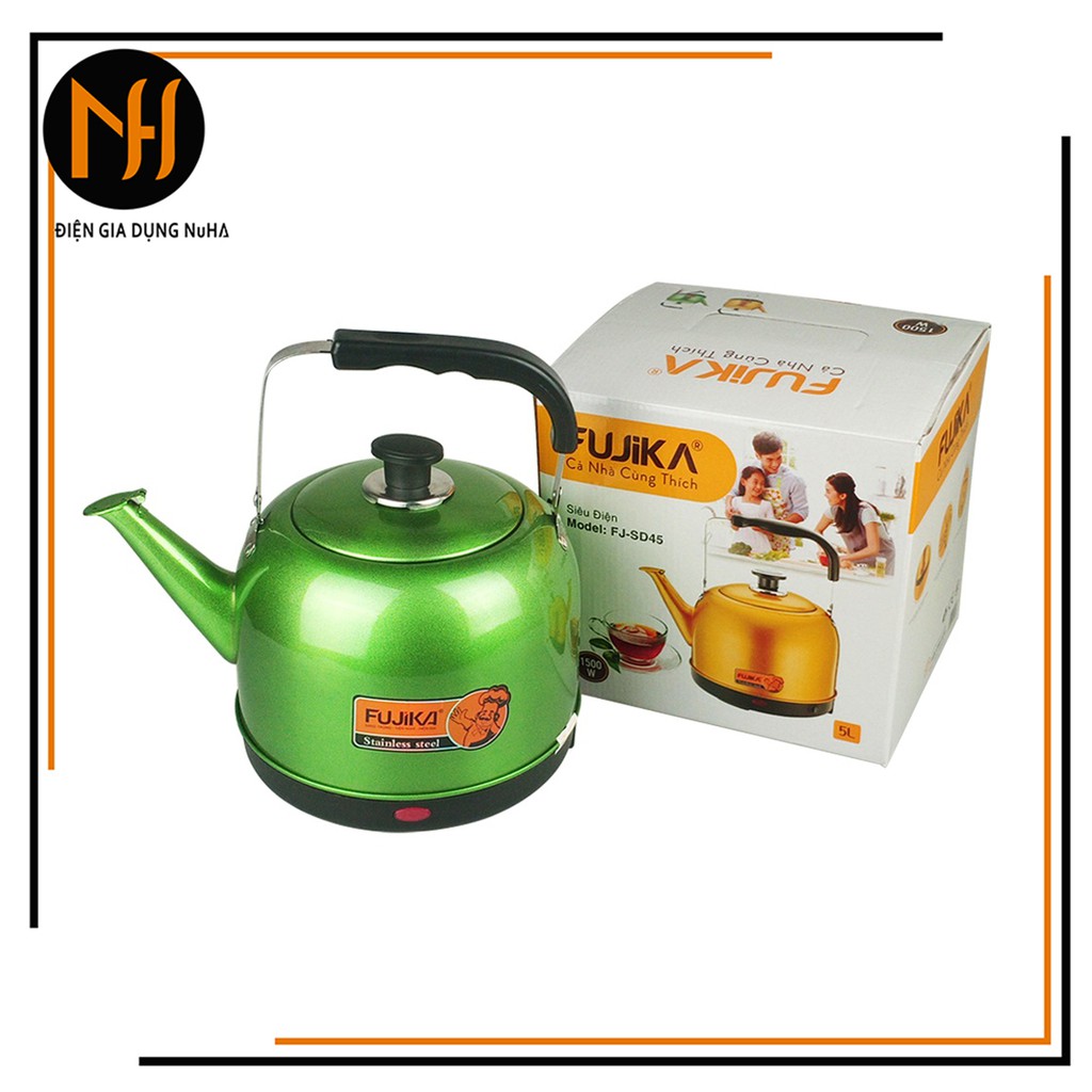 Ấm siêu tốc 5L Fujika FJ-SD45 xanh thân ấm inox phun sơn tĩnh điện, công suất 1500W, bảo hành 12 tháng