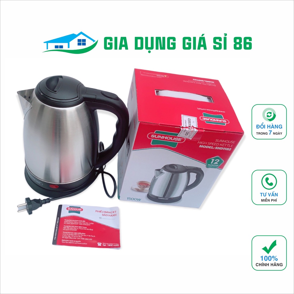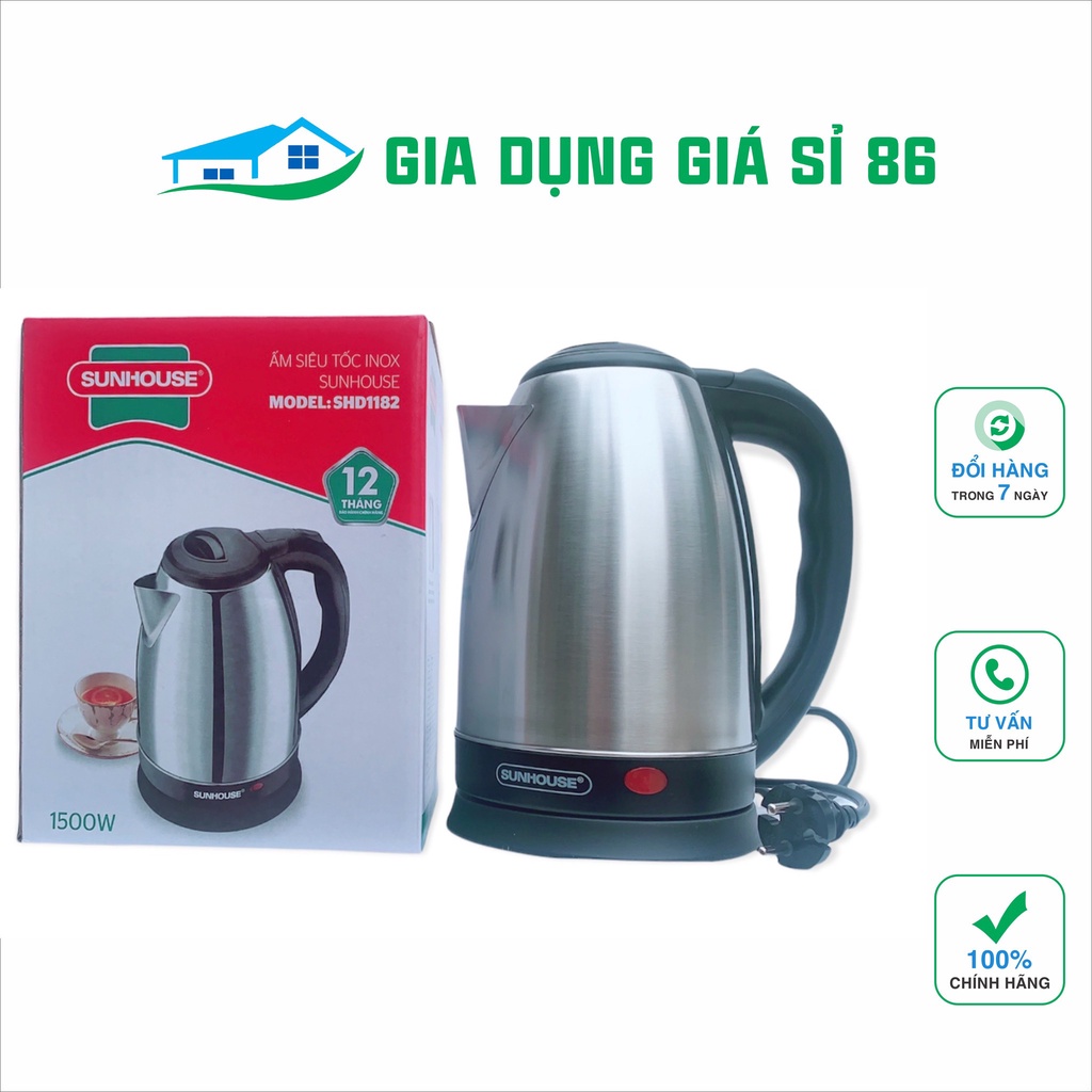 Ấm siêu tốc, Ấm siêu tốc Sunhouse inox 2 lớp 1.8L SHD1182 sôi nhanh, an toàn, tự động ngắt khi nước sôi.