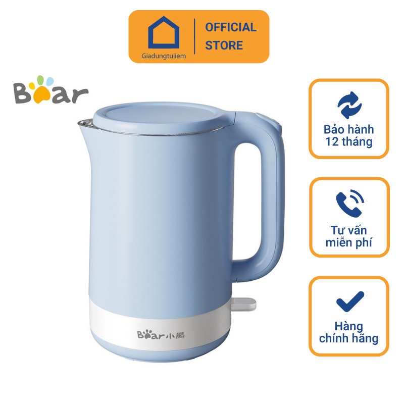 Ấm siêu tốc Bear , Ấm đun nước, pha trà lõi INOX304 cao cấp - Dung tích 1.5L - Công suất 1500W - Bảo hành 12 tháng