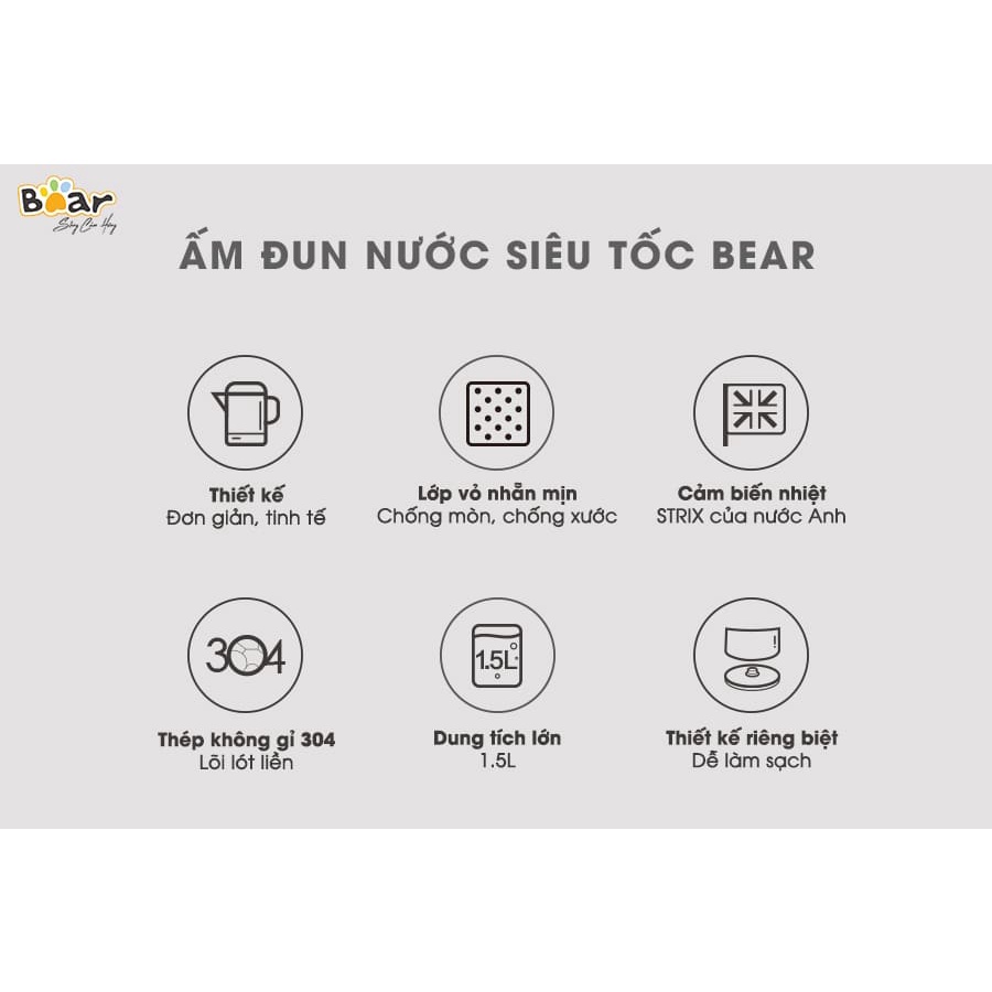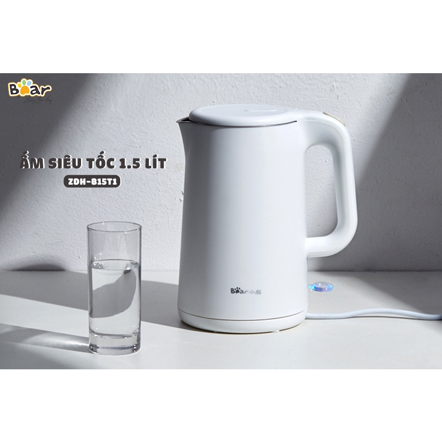 Ấm siêu tốc Bear dung tích 1.5l, ấm đun nước sôi nước nhanh chỉ trong 5p, bảo hành chính hãng 18 tháng ZDH-B15T1