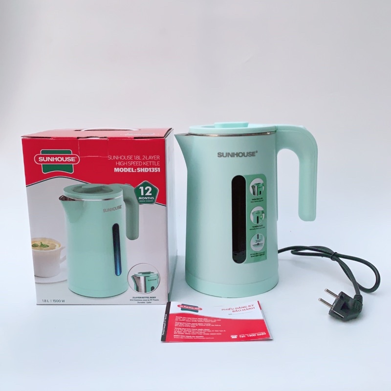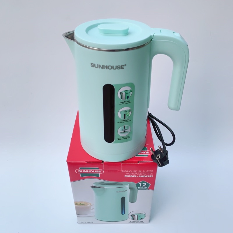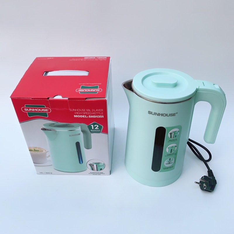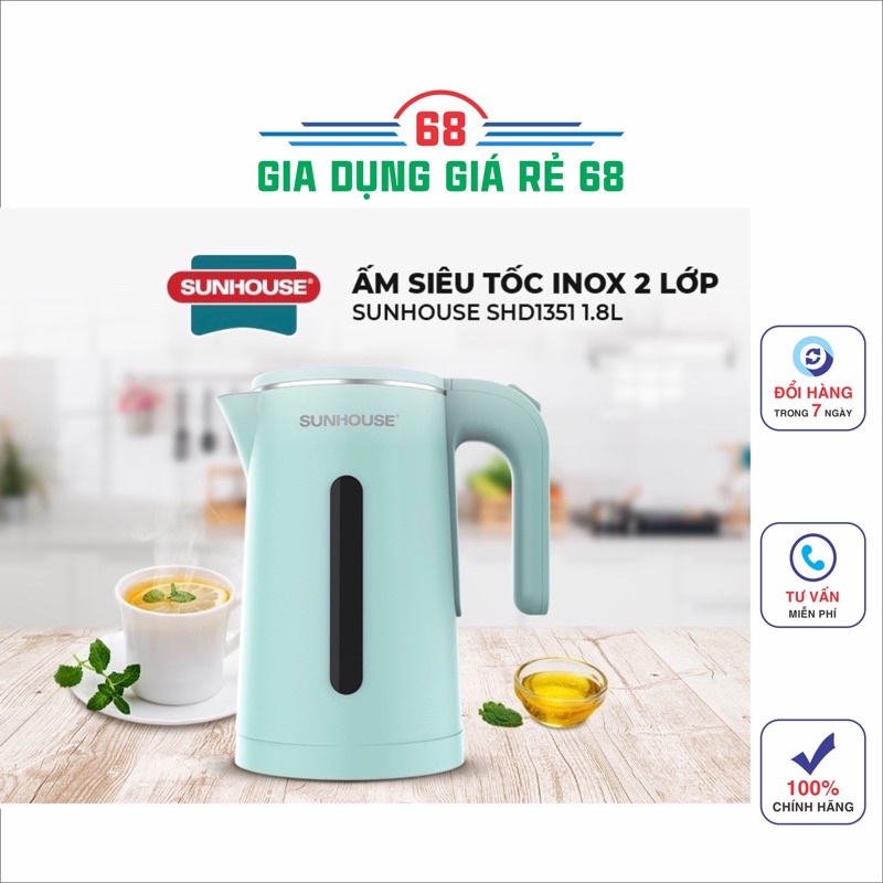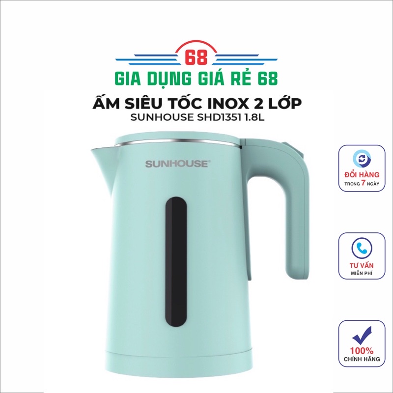Thiết Bị Điện Gia Dụng > Đồ gia dụng nhà bếp > Ấm đun siêu tốc || Ấm siêu tốc, bình đun siêu tốc Sunhouse inox 2 lớp, dung tích 1,8 lit, SHD1351Còn hàng