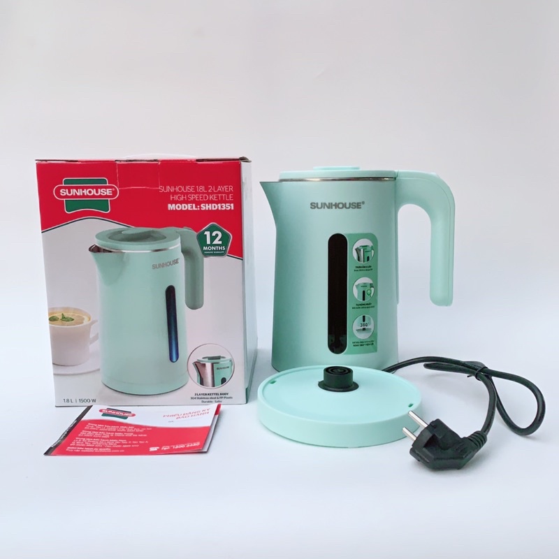 - Màu sắc xanh pasel vô cùng thời thượng, ấm siêu tốc sunhouse shd1351 không chỉ là một thiết bị nhà bếp mà còn đem đến tính thẩm mĩ cho căn bếp của bạn.