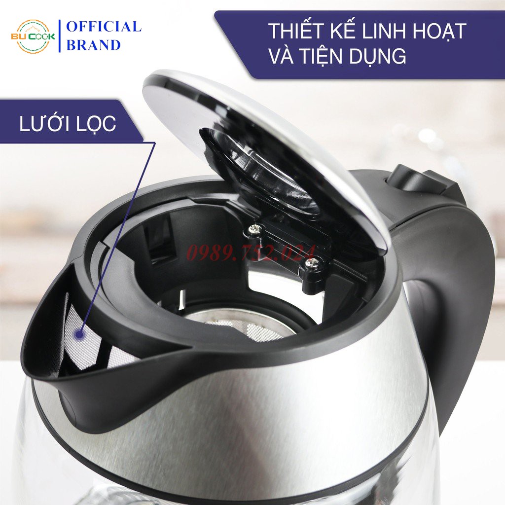Ấm siêu tốc bình siêu tốc, ấm đun nước thủy tinh cao cấp BUCOOK BNP0521 1.8L