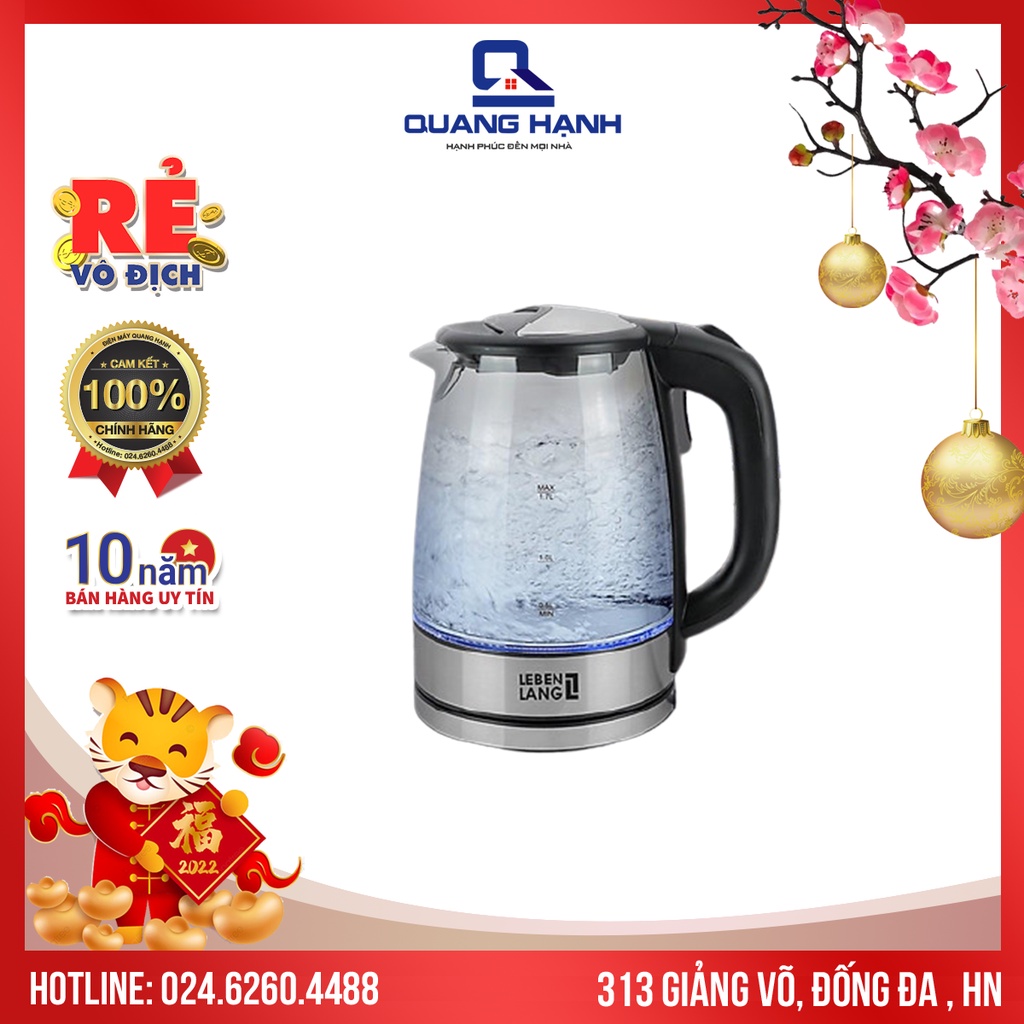 Ấm siêu tốc bình siêu tốc thủy tinh LEBENLANG LBL2879 1.7 lít công suất 2200W