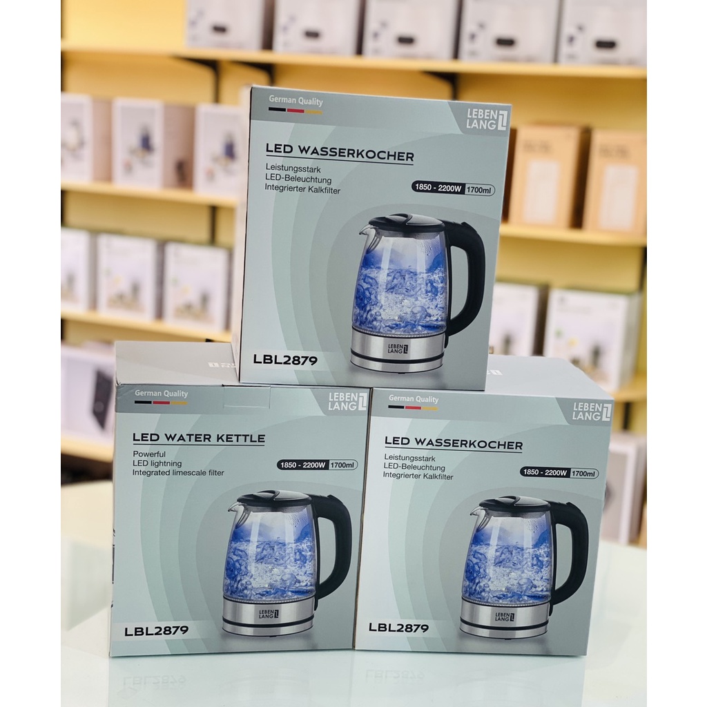 Ấm siêu tốc bình siêu tốc thủy tinh LEBENLANG LBL2879 1.7 lít công suất 2200W bảo hành 24 tháng