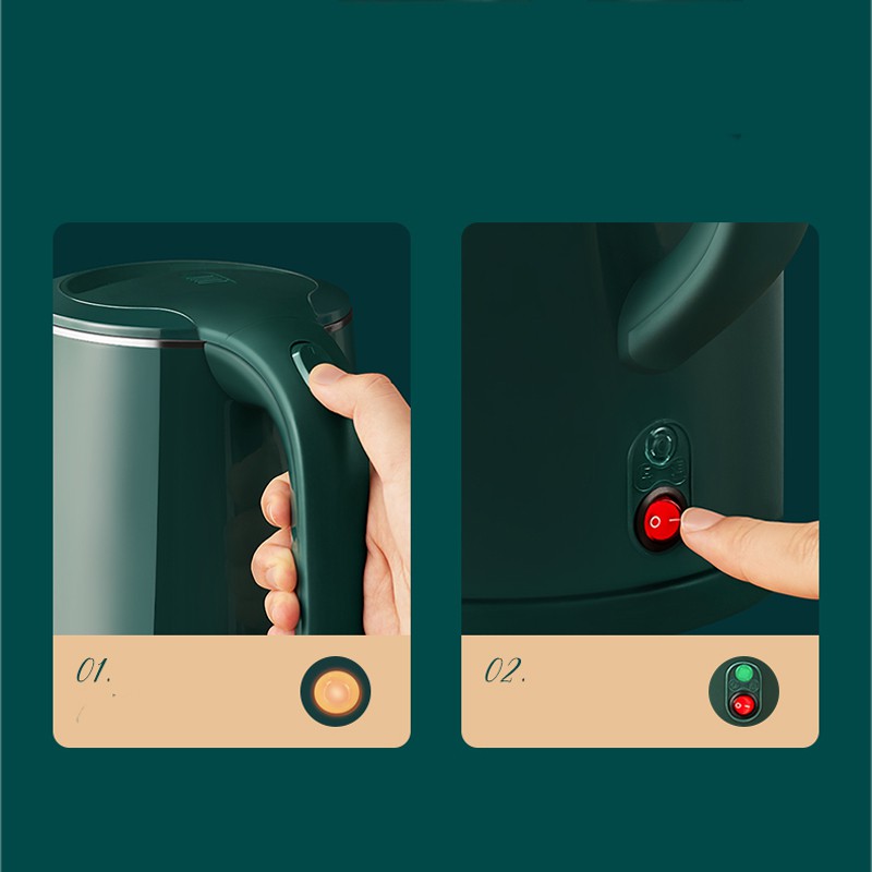 👉 Đèn tự động báo hiệu bật/tắt: Ấm trang bị đèn LED hiển thị bật/tắt điện an toàn, giúp người dùng dễ dàng nhận biết hoạt động của ấm.