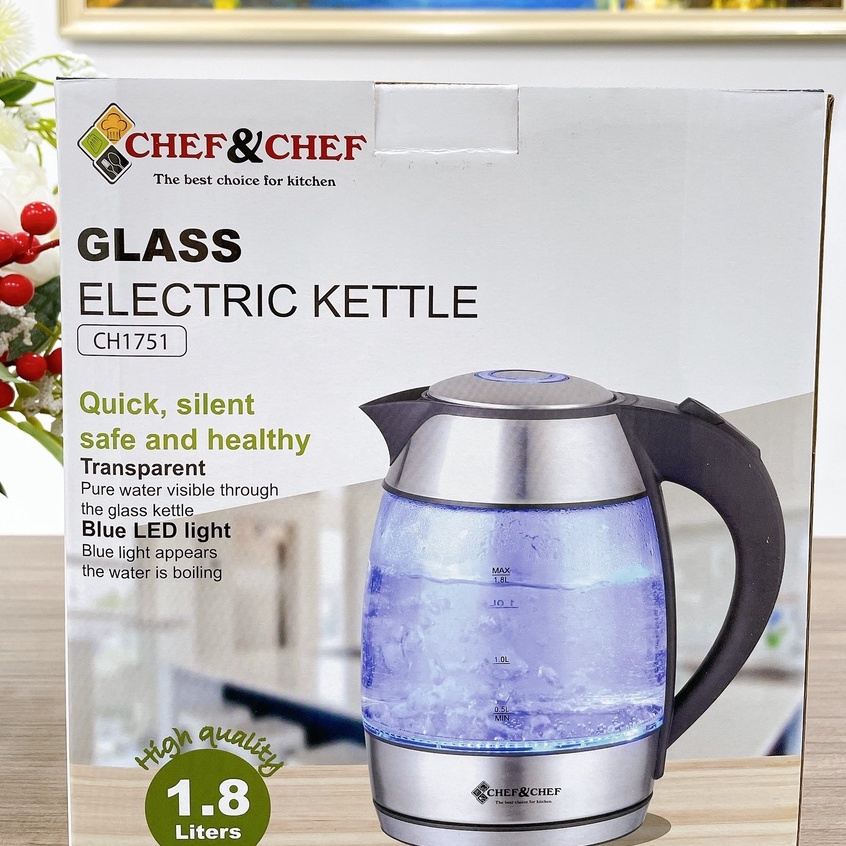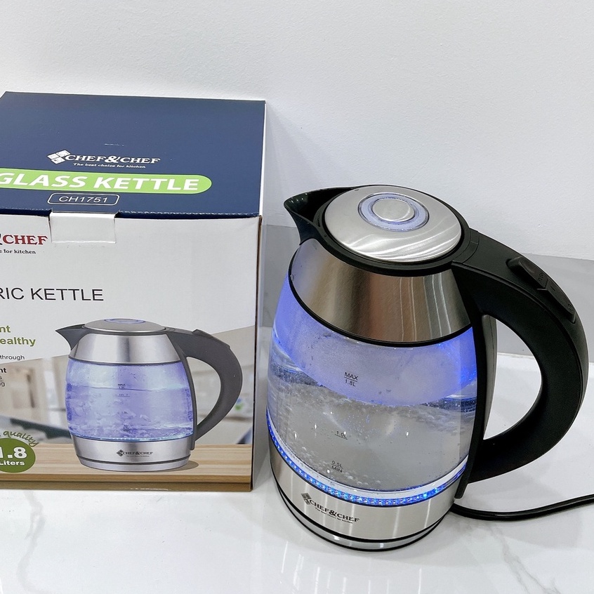 😍 Ưu điếm sản phẩm - ấm đun nước siêu tốc thủy tinh CHEF&CHEF 1.8L