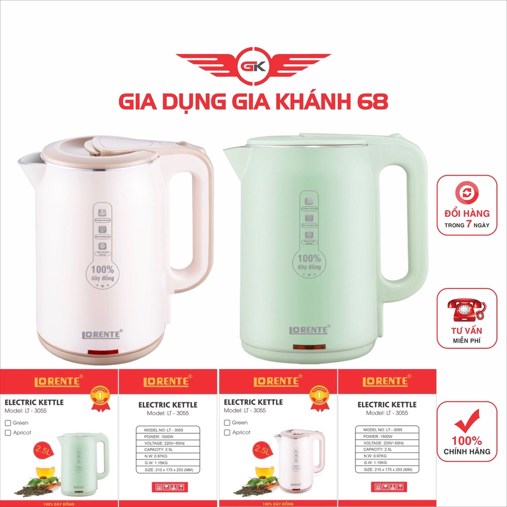 Ấm Siêu Tốc-Chính Hãng LORENTE-MODEL LT-3055 1500W 2.5L-Ấm Siêu Tốc -BH 12ThángCông suất: 1500W