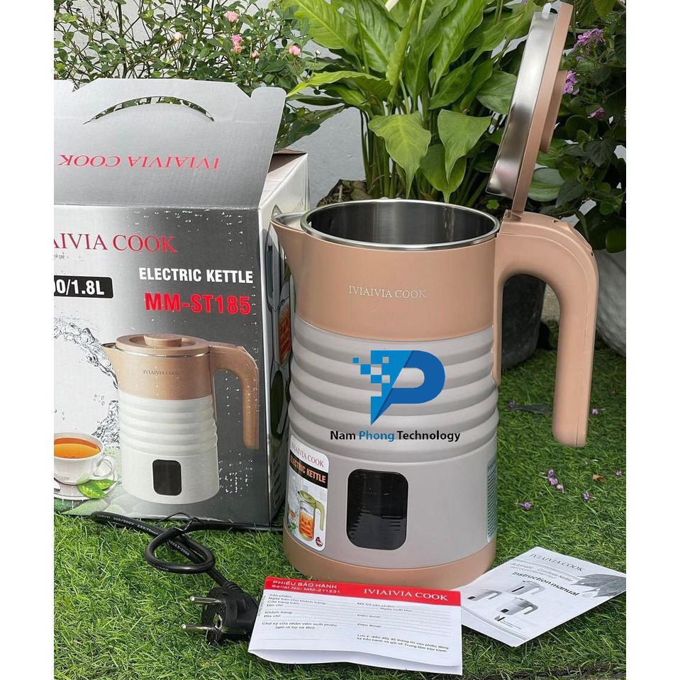 Ấm Siêu Tốc Điện Inox 2 Lớp 1.8L IVIAIVIA COOK MM-ST185 - Hàng Chính Hãng Có Bảo Hành