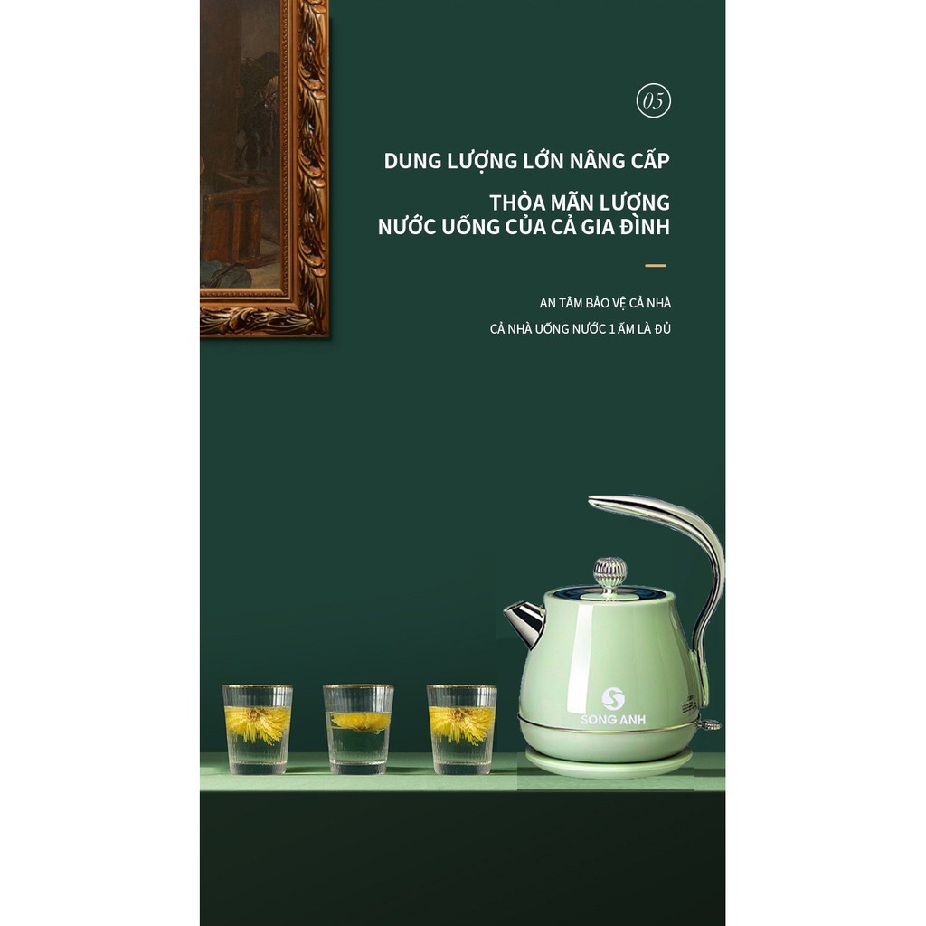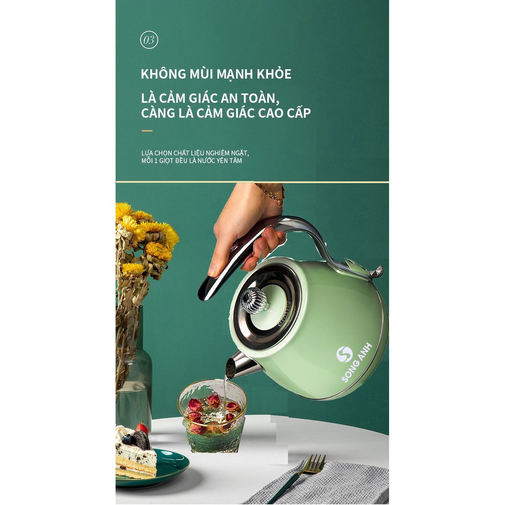 Ấm siêu tốc đun nước 1.8L , pha trà cao cấp INOX304 SONG ANH- Bình pha trà Decor đẹp, tiện lợi-Tiết kiệm điện