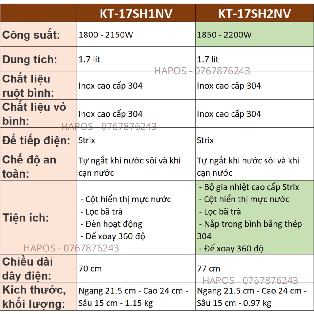 ✓ Bình đun siêu tốc KT-17SH2NV: