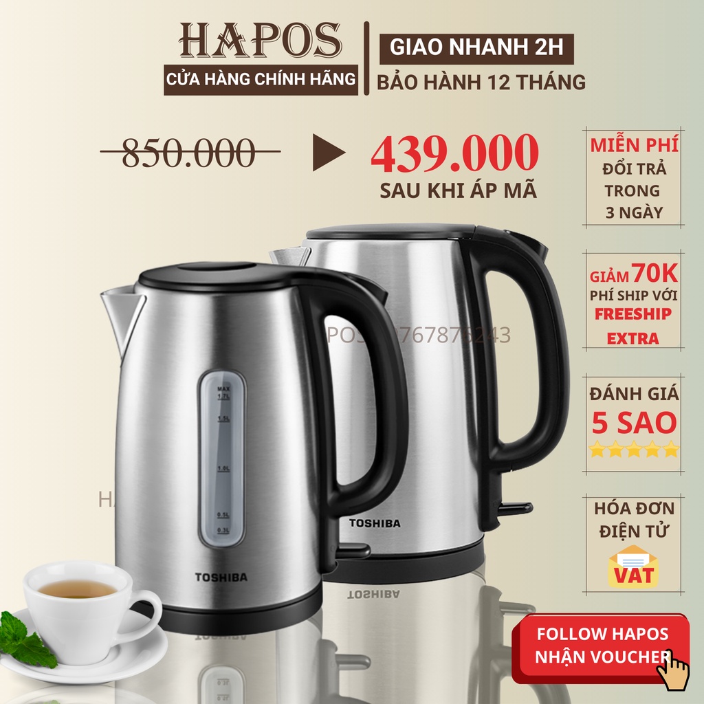 Thiết Bị Điện Gia Dụng > Đồ gia dụng nhà bếp > Ấm đun siêu tốc || Ấm siêu tốc đun nước Inox Toshiba KT-17SH1NV / KT-17SH2NV 1,7L có báo đèn, tự ngắt điện - HAPOSCòn hàng