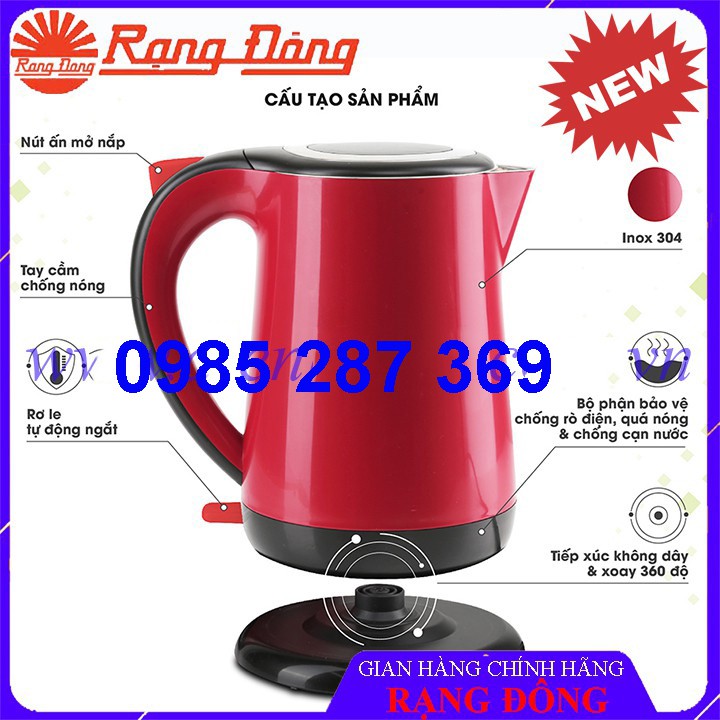 Thiết Bị Điện Gia Dụng > Đồ gia dụng nhà bếp > Ấm đun siêu tốc || Ấm siêu tốc đun nước Rạng Đông 1,8L / 1,7L siêu bền, cách điện an toàn, inox 304Còn hàng