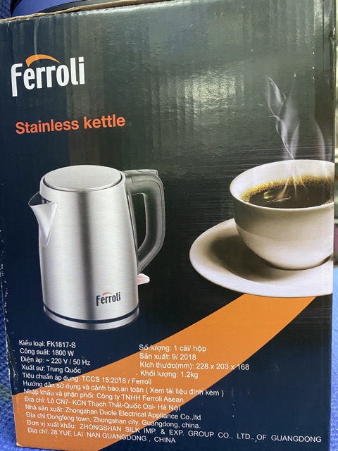 Bình đun siêu tốc Ferroli FK1817-S có dung tích 1,7 lít với công suất 1800W đáp ứng tốt với các nhu cầu như pha sữa, pha trà, nấu mì… của nhiều gia đình hiện nay.