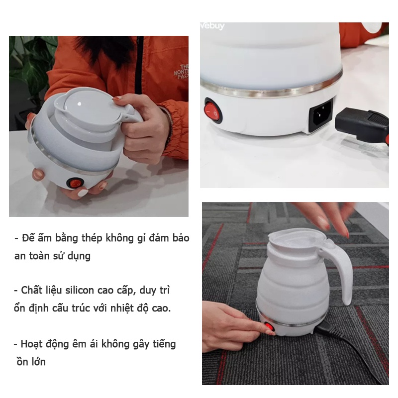 Ấm siêu tốc gấp gọn công suất 600W dung tích 500mL , tiện lợi khi mang đi du lịch