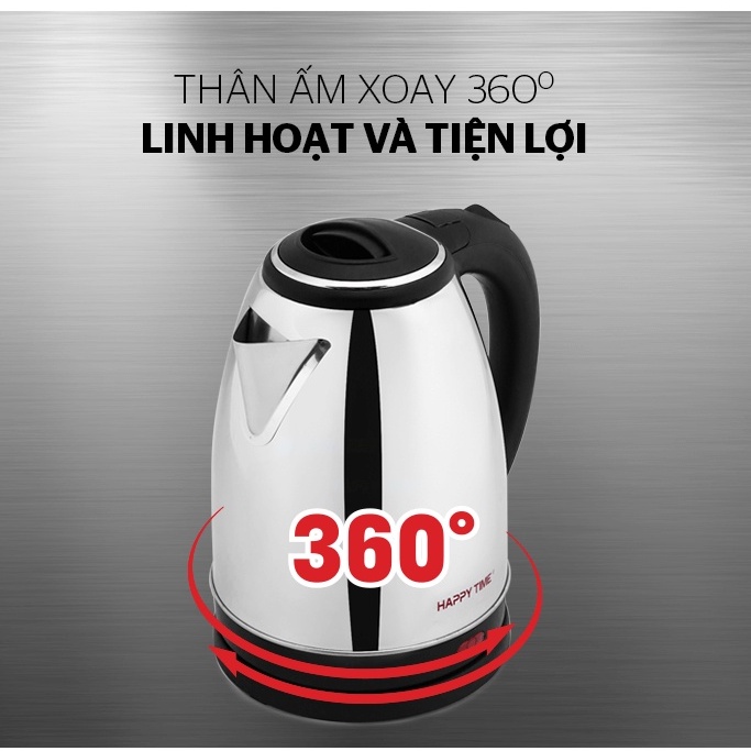 Ấm siêu tốc Happy Time 1,8l Bình đun siêu tốc Inox Cách Nhiệt HTD1081 Công suất 1500W Tự ngắt - HAPOS Phân Phối