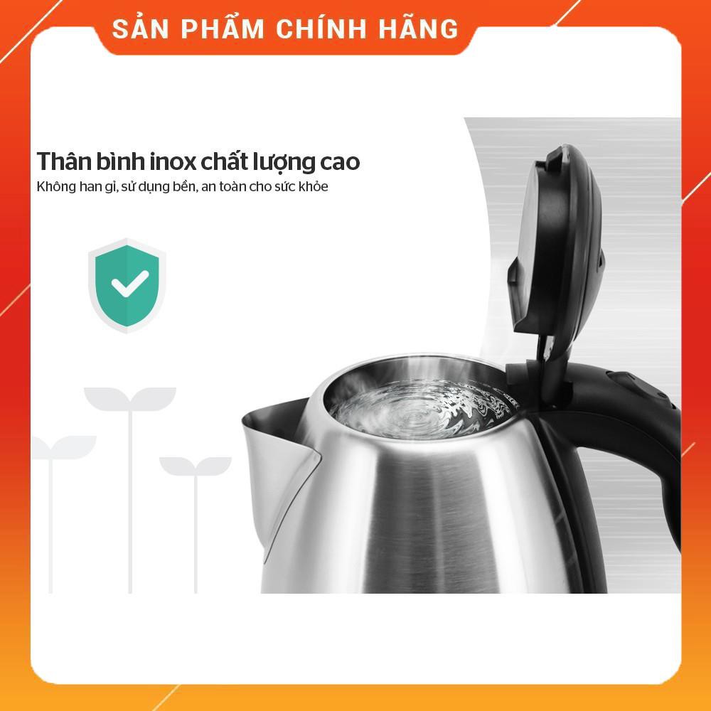 Đặc điểm khác Thân ấm xoay 360 độ, tự động ngắt khi nước sôi, quai làm bằng nhựa chịu nhiệt siêu bền, Rơ le bảo vệ khi cạn nước