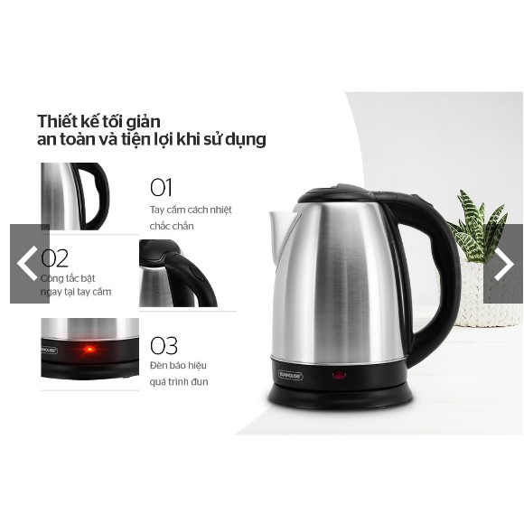 Ấm siêu tốc Inox 1.8L SUNHOUSE SHD1182