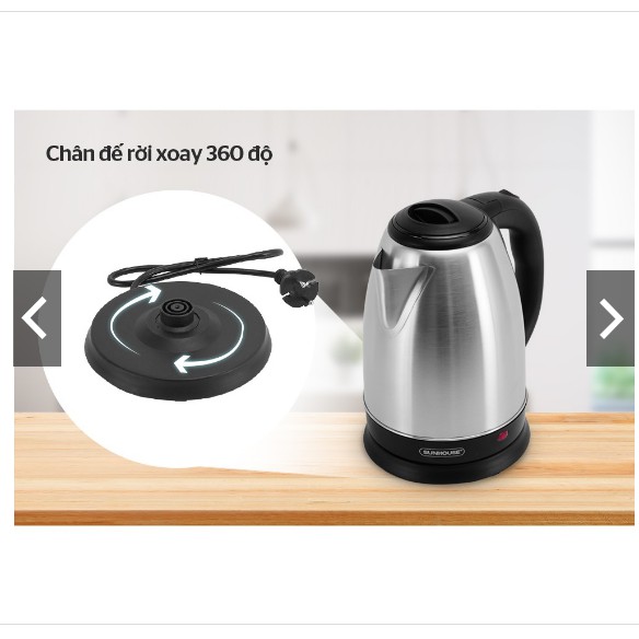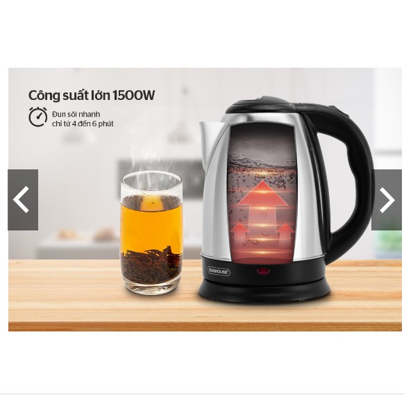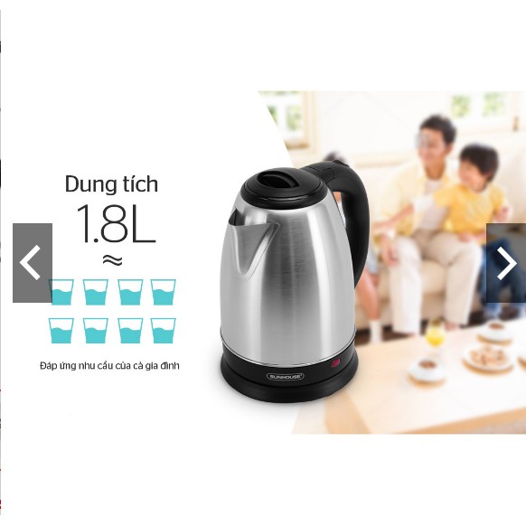 Thiết Bị Điện Gia Dụng > Đồ gia dụng nhà bếp > Ấm đun siêu tốc || Ấm siêu tốc Inox 1.8L SUNHOUSE SHD1182Còn hàng