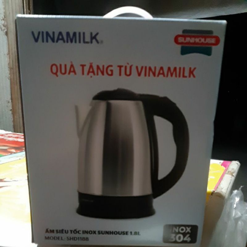 Ấm siêu tốc inox sunhouse 1.8l quà tặng vinamilk