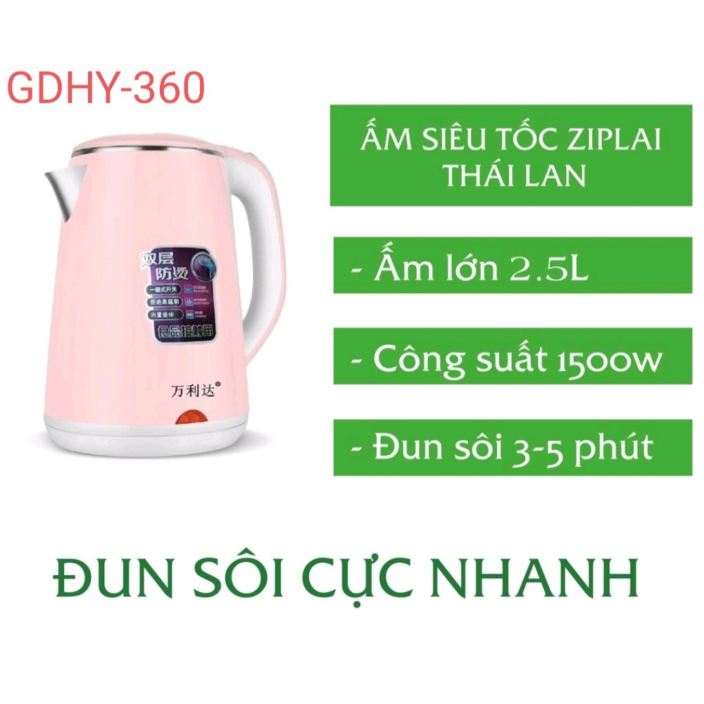 Ấm siêu tốc Jiplai 2.5L -1500W loại 1 - Bảo hành 6 tháng .