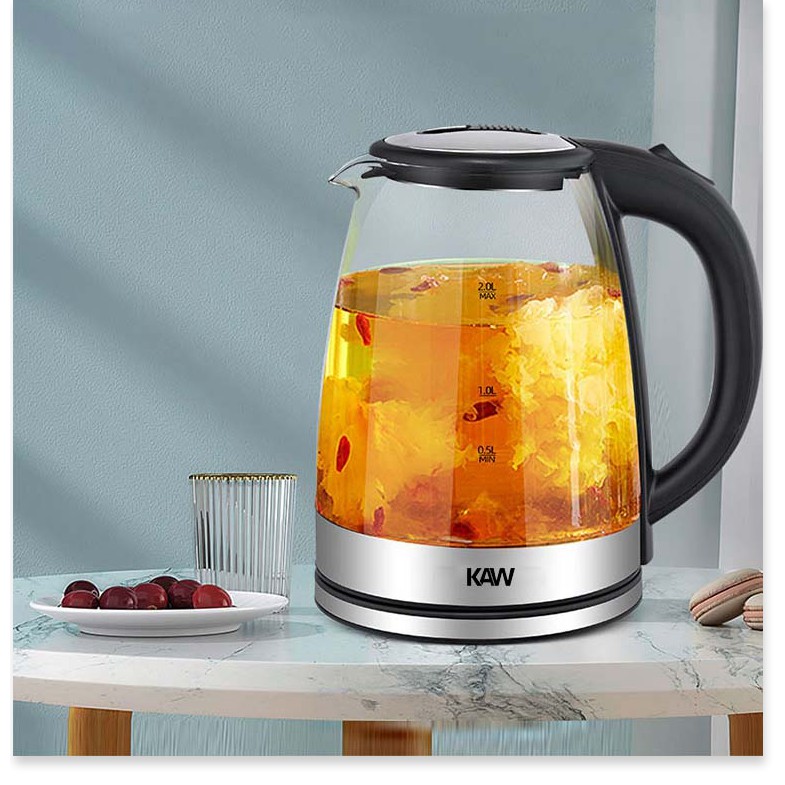Ấm Siêu Tốc KAW RK1818 ✔️Chính Hãng✔️ dung tích 2L, tiết kiệm điện, bình thủy tinh trong suốt, nước nóng siêu nhanh.