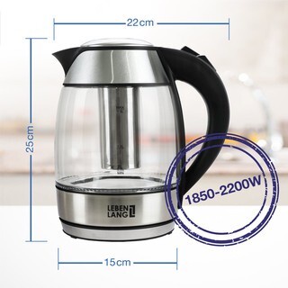 Ấm siêu tốc Lebenlang Đức, bình siêu tốc thủy tinh 1.8L đun nước có lõi lọc pha trà tiện lợi, bảo hành 24 tháng LB2819
