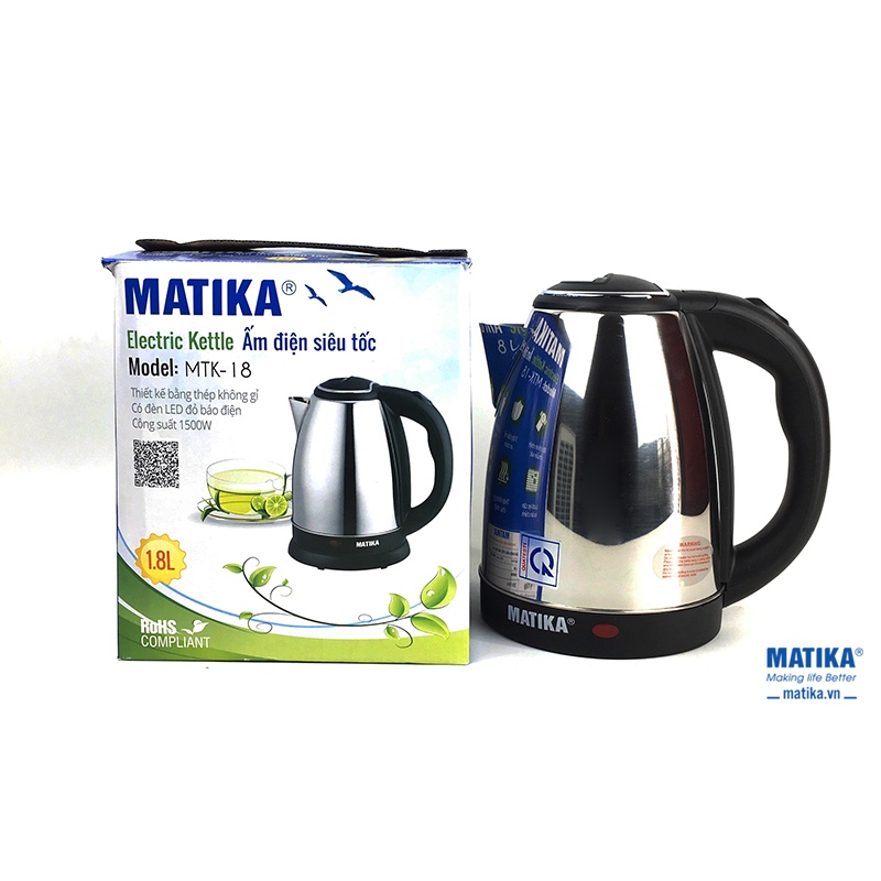 Ấm Siêu Tốc MATIKA Inox MTK-18 - 1.8 Lít - Hàng chính hãng