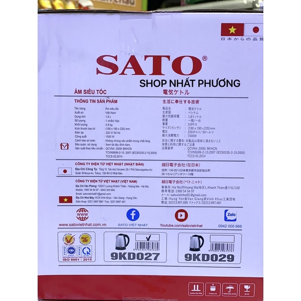 Ấm đun Sato- Hàng cao cấp từ công nghệ Nhật Bản. Gia dụng thiết yếu của mọi gia đình. Thời gian đun sôi nhanh chóng, tự động ngắt khi nước sôi. Sản xuất tại Việt Nam