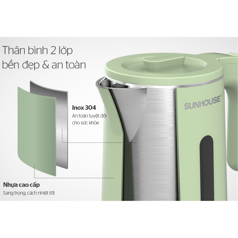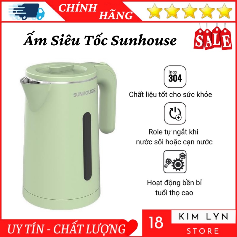 Ấm Siêu Tốc Sunhouse , Bình Siêu Tốc Innox 2 Lớp Cao Cấp Đun Nước Siêu Nhanh - Bảo Hành 12 Tháng
