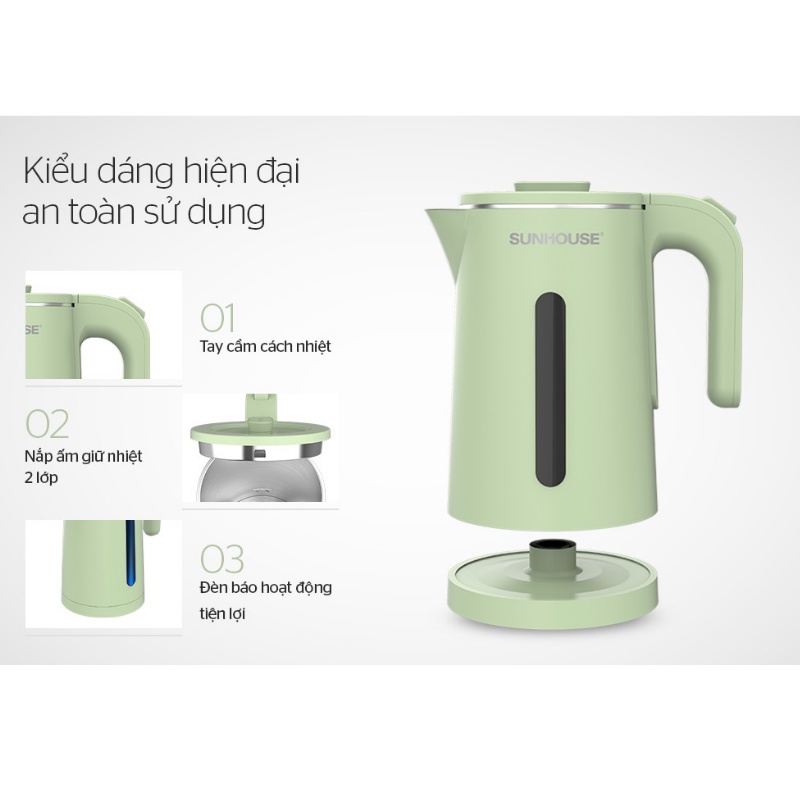 Giới thiệu Ấm Siêu Tốc Sunhouse , Bình Siêu Tốc Innox 2 Lớp Cao Cấp Đun Nước Siêu Nhanh - Bảo Hành 12 Tháng