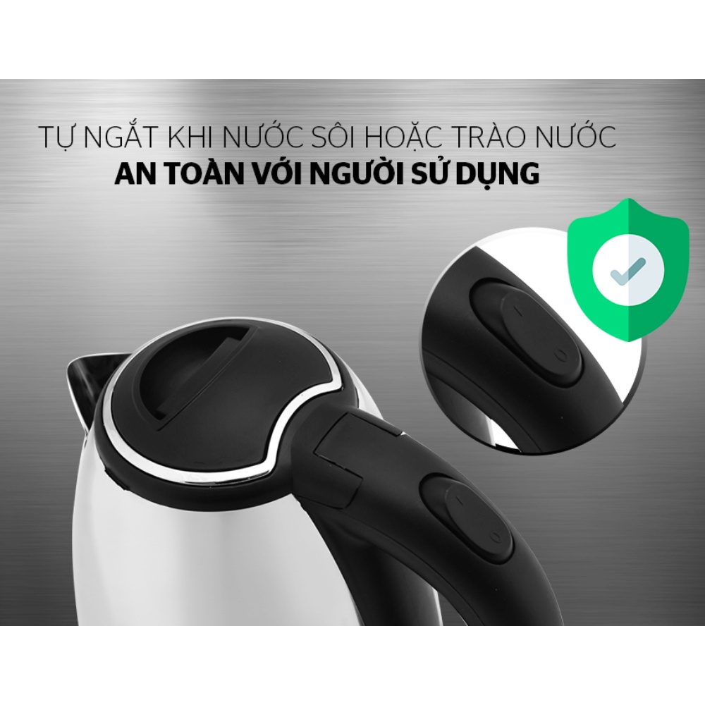 👉 Chế độ tự động tắt khi nước sôi hoặc cạn nước : Ấm có chế độ ngắt tự động khi nước sôi hoặc cạn nước, đảm bảo an toàn tối đa cho người sử dụng (quên/bận rộn công việc khác). Chức năng này còn giúp làm tăng tuổi thọ sản phẩm và phòng chống cháy nổ.