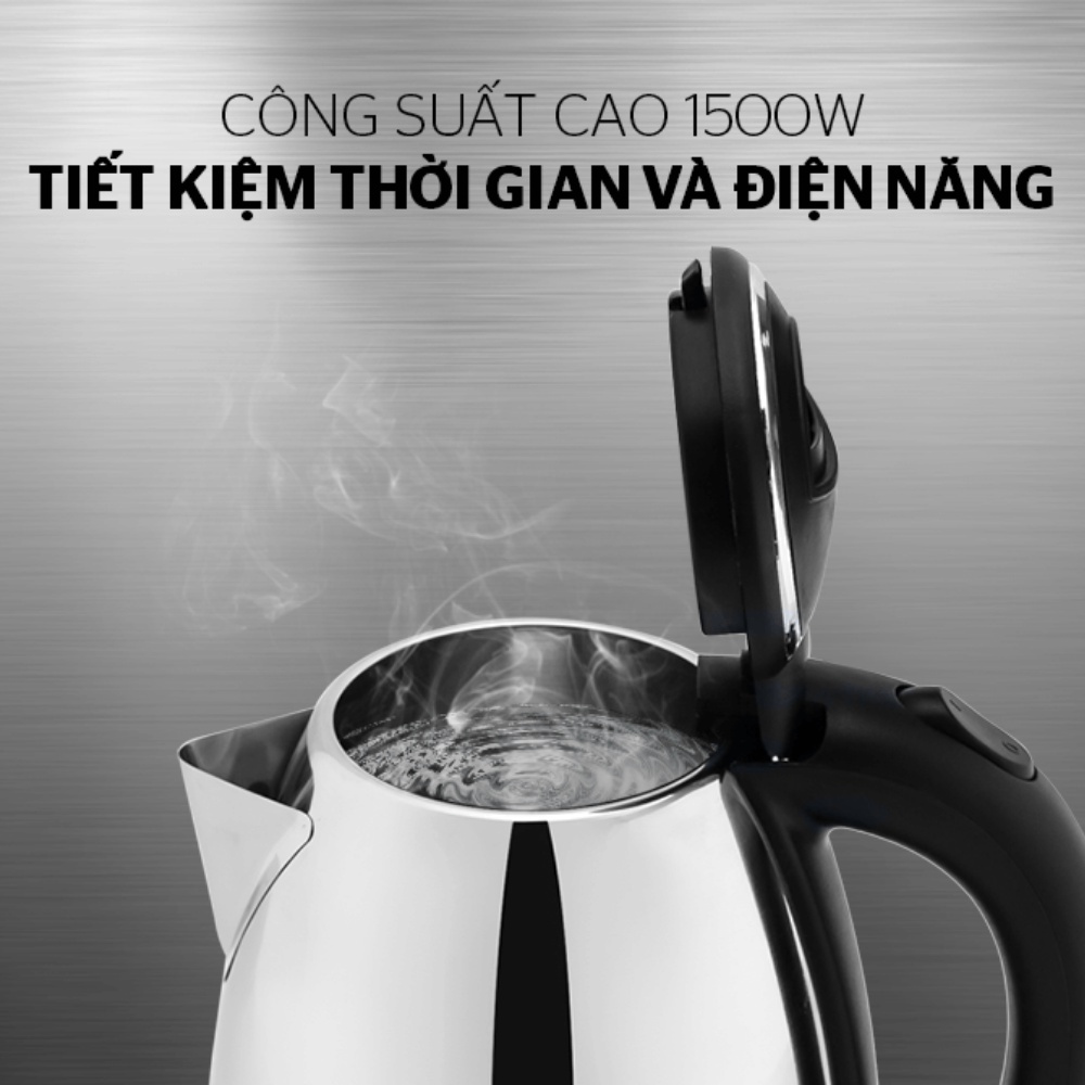 👉 Tiết kiệm điện năng : Công suất mạnh 1500W cho thời gian nấu nước nhanh chóng, giúp tiết kiệm thời gian và điện năng tối đa.
