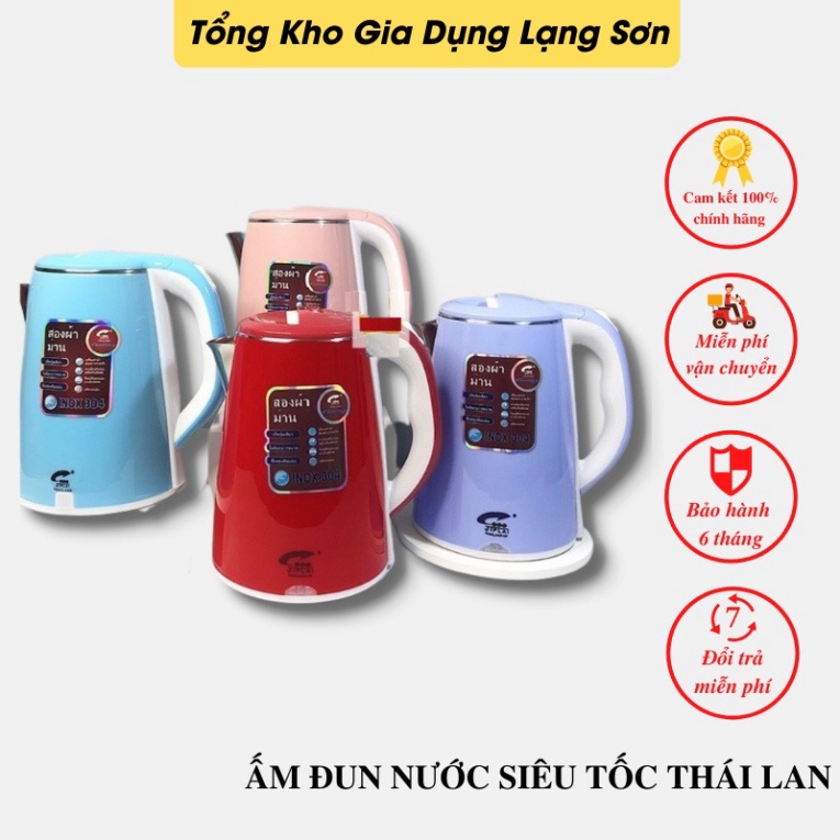 - Ấm siêu tốc thái lan sôi nhanh , bình đun nước 2 lớp 2.5 lít inox 304 an toàn , chống nóng , chống giật bảo hành 12 tháng