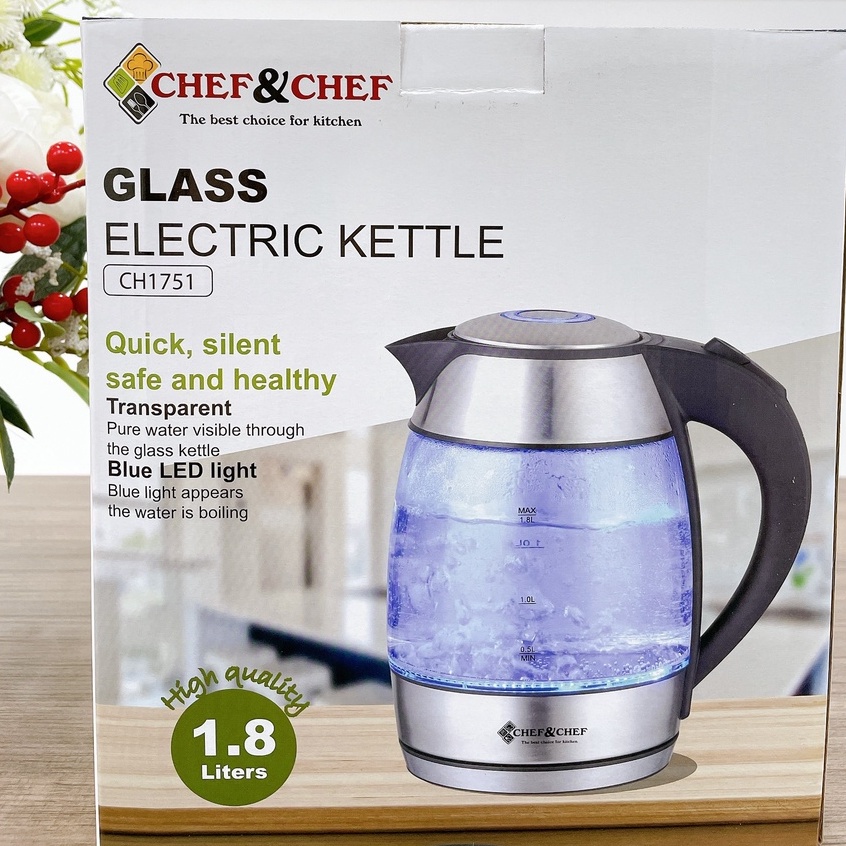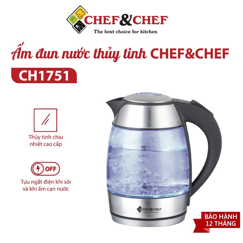 ẤM SIÊU TỐC THỦY TINH CHEF&CHEF CH-1751 LÕI LỌC INOX CAO CẤP