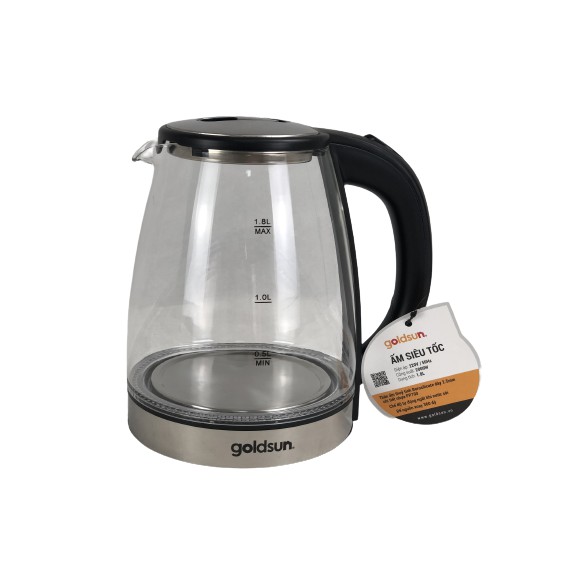 Ấm siêu tốc thủy tinh Goldsun CH2701, có đèn Led - Bảo hành 1 năm chính hãng