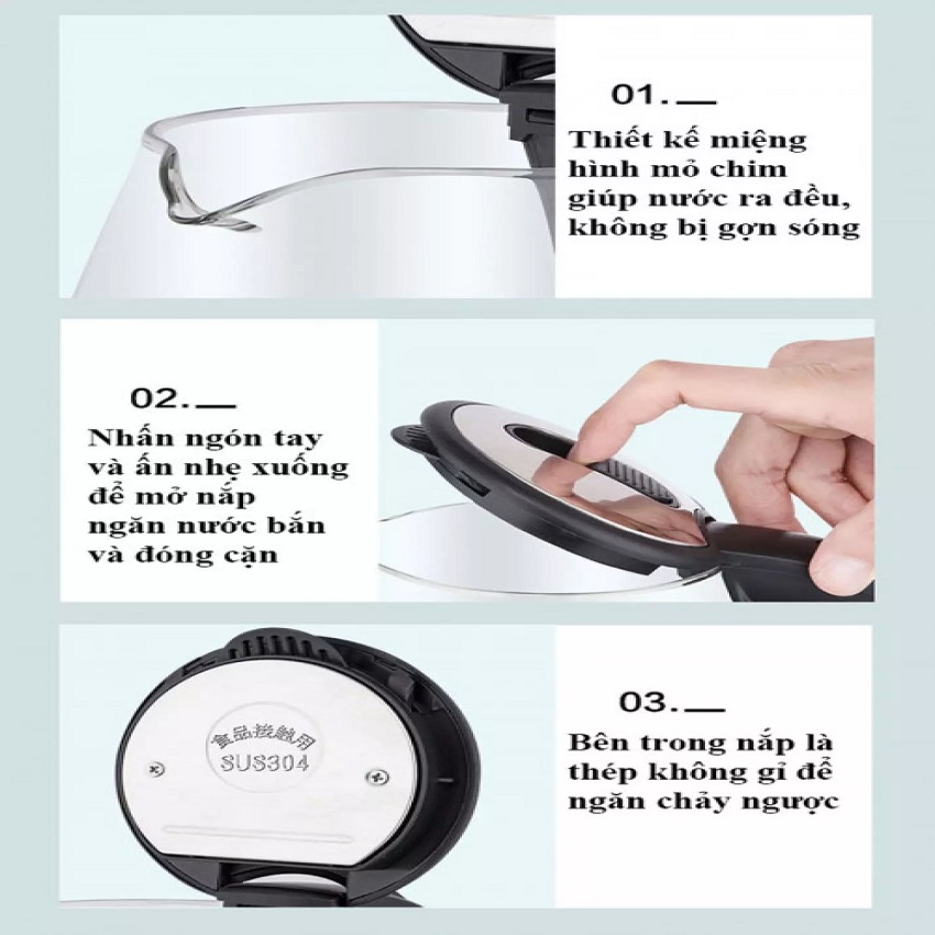 👉 Tự động ngắt khi sôi/cạn nước hoặc quá nhiệt