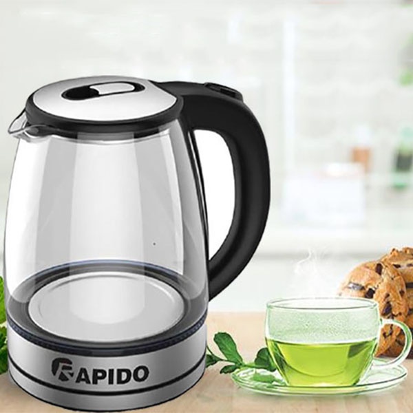 - Ấm siêu tốc thủy tinh Rapido,KAW có thiết kế sang trọng , tinh tế với thân bình được làm bằng thủy tinh cao cấp có khả năng chịu nhiệt tốt, an toàn cho sức khỏe của người tiêu dùng.