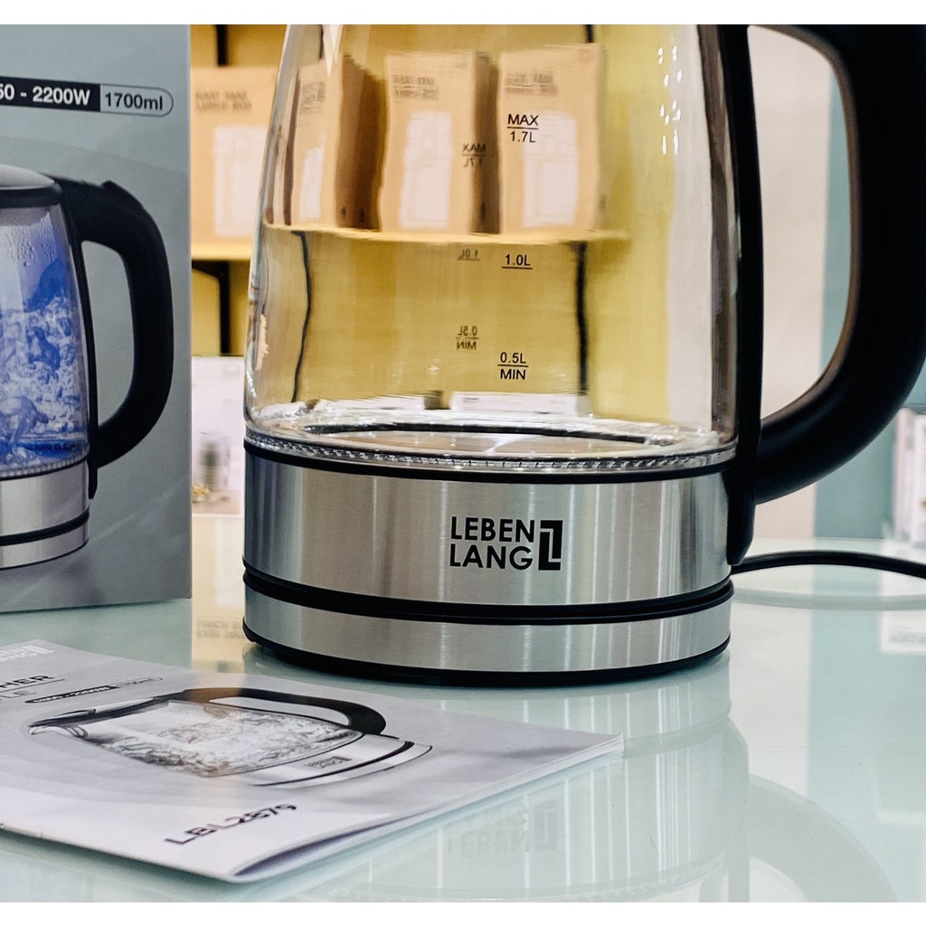 Ấm siêu tốc thuỷ tinh Lebenlang Đức 1.7L LBL2879