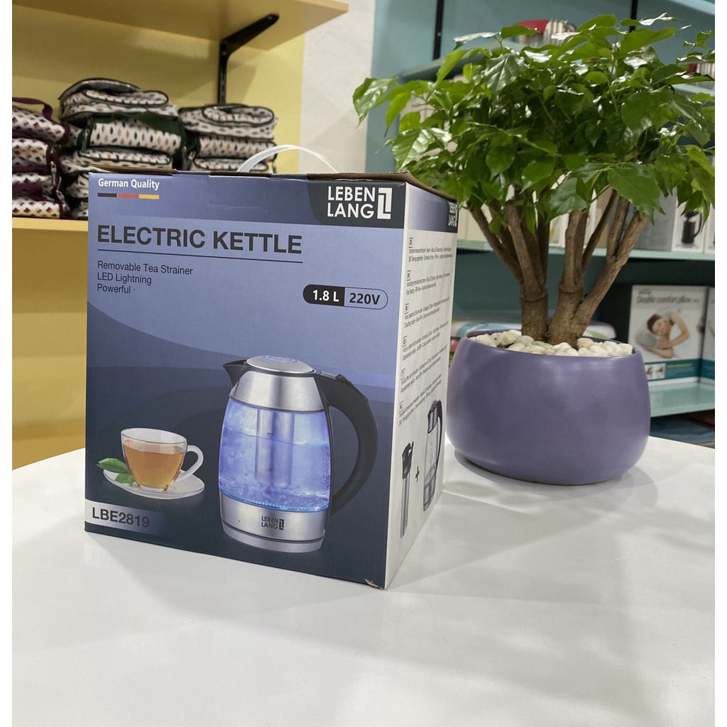 Ấm siêu tốc thủy tinh Lebenlang 1.8l – Hàng tiêu chuẩn Đức