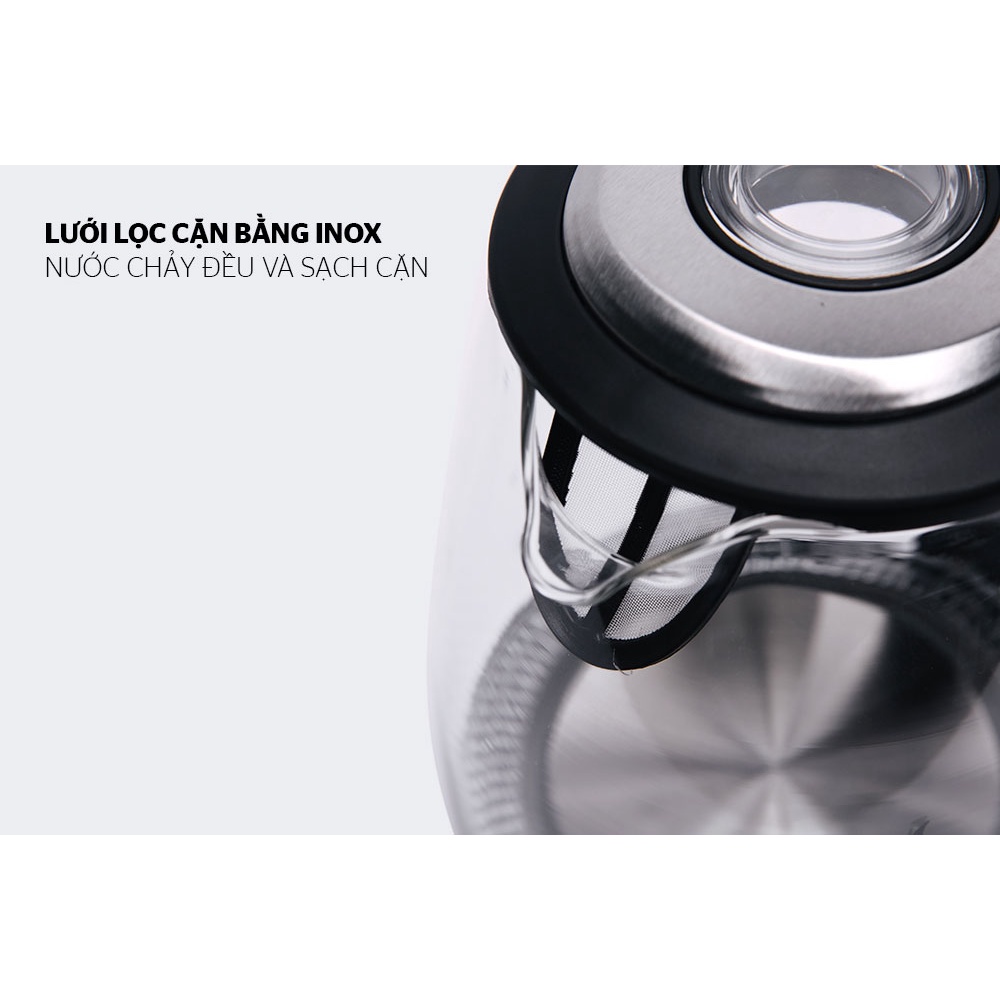 [Mã 154ELSALE2 giảm 7% đơn 300K] Ấm siêu tốc thủy tinh Sunhouse SHD1217, Công suất 1850W, Màng lọc chống cặn thông minh
