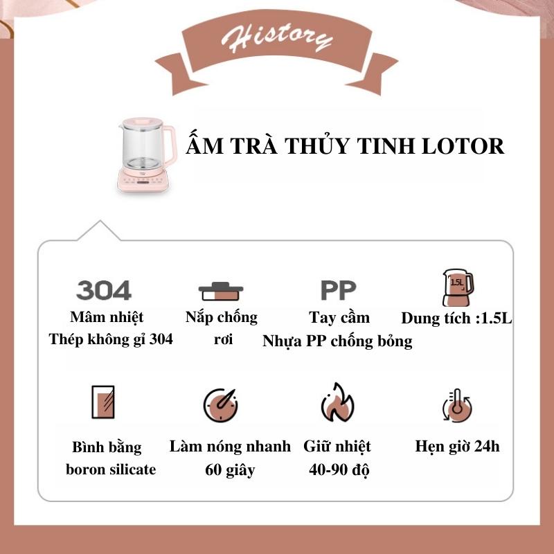 Thiết Bị Điện Gia Dụng > Đồ gia dụng nhà bếp > Ấm đun siêu tốc || Ấm trà thủy tinh, đa năng, an toàn sức khỏe, đun nước pha trà nấu cháo Chính hãng LOTOR H16 - BH 12 tháng - Lotor L009Còn hàng