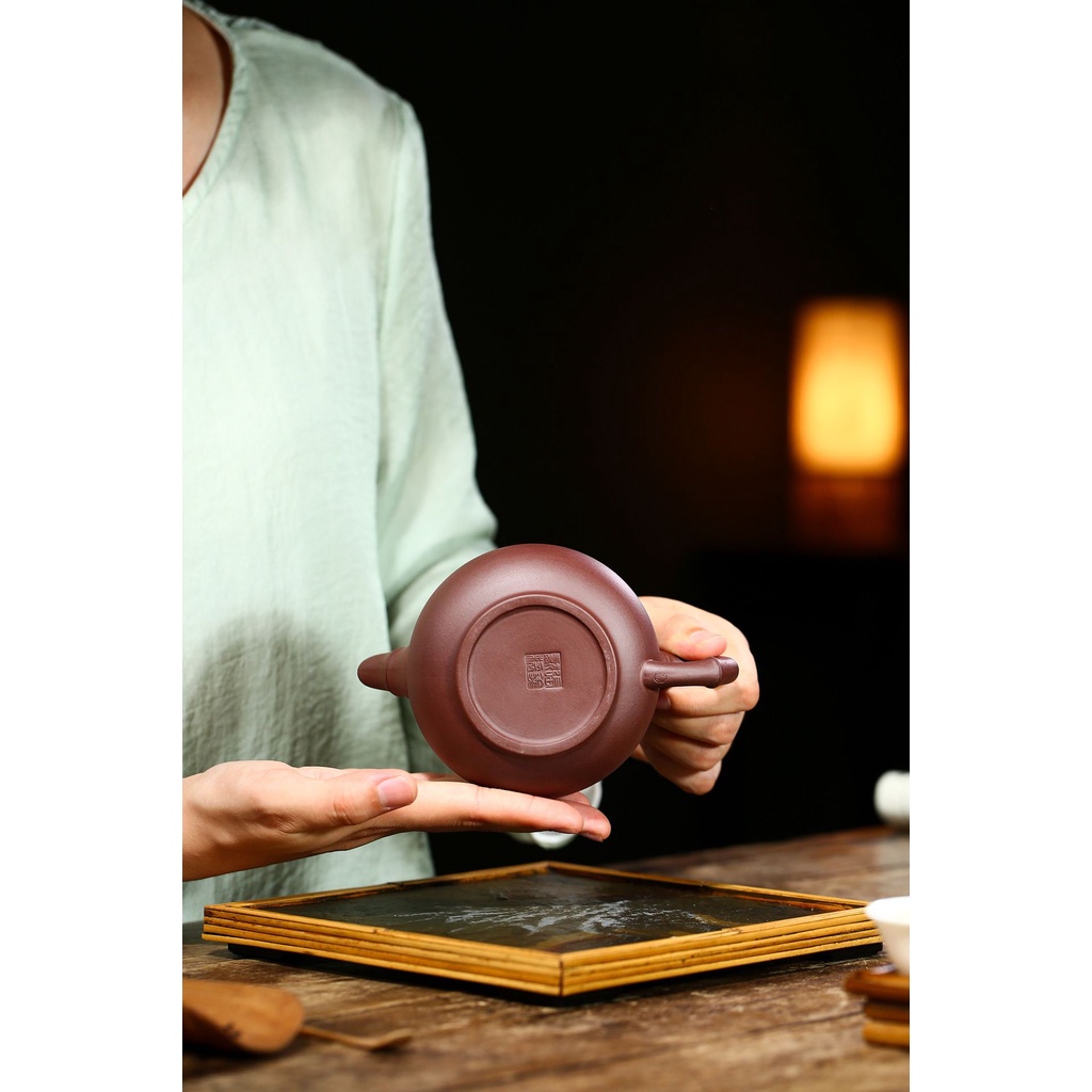 Ấm Tử Sa Nghi Hưng Bán Ngõa 210 ml (Tử Nê)+ Ấm đẹp, chất đất đanh, mầu ấm tươi, vòi nước dòng chảy tốt.