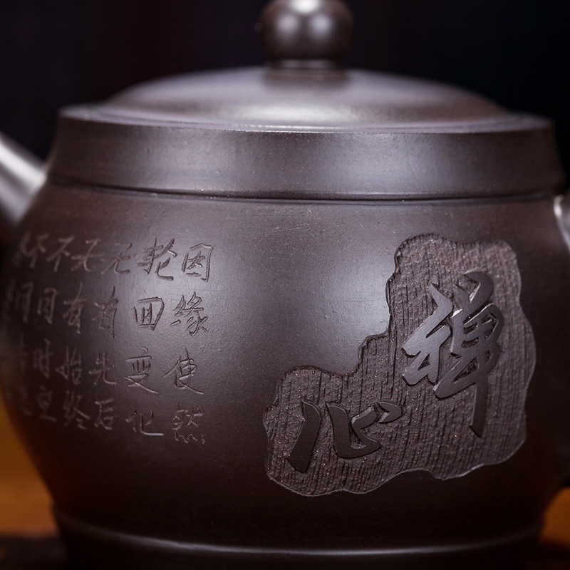 Ấm Tử Sa Nghi Hưng Tâm Thiền 200 ml (Hắc Nê, Lọc Tổ Ong)
