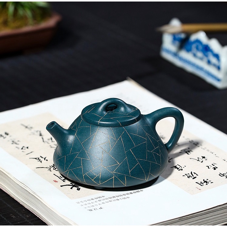 Nhà cửa & Đời sống > Dụng cụ nhà bếp > Dụng cụ pha trà, cà phê || Ấm Tử Sa Nghi Hưng Thạch Biều Kim Văn 250 ml (Thiên Thanh Nê)Còn hàng