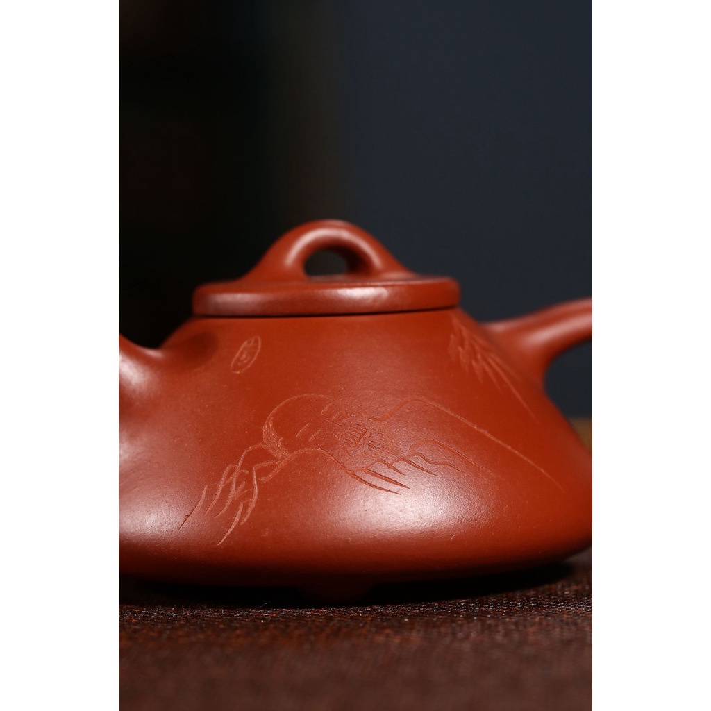 Ấm Tử Sa Nghi Hưng Thạch Biều Lão Tử 180 ml (Đại Hồng Nê)+ Ấm đẹp, chất đất đanh, mầu ấm tươi, vòi nước dòng chảy tốt.
