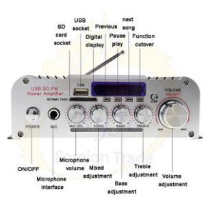 - Thẻ SD, U đĩa, MP3 định dạng chơi, hỗ trợ Bluetooth kết nối không dây. Hỗ Trợ FM radio stereo.